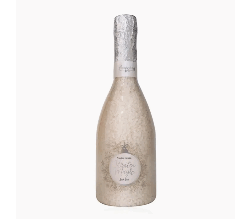 Bath additive Bath Salt WINTER MAGIC in Champagne Bottle, 750g, Scent: Frosted Vanilla, Color: white/cream/gold