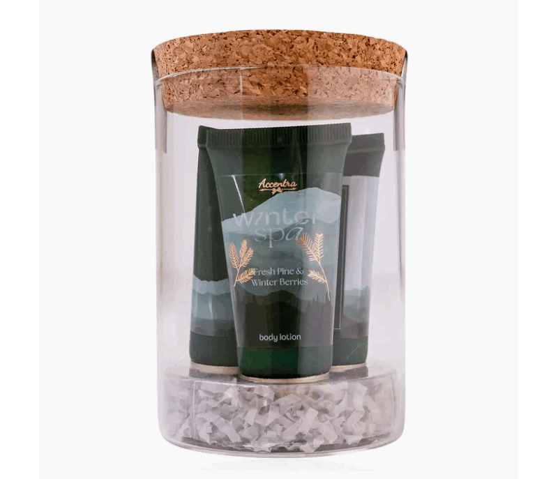 Sett med 3 deler inni. Dusj såpe, body lotion og håndkrem