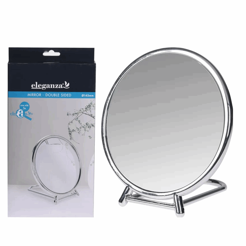 Sminkespeil eller barber speil som står selv. Forstørrer ca. 5 ganger.
