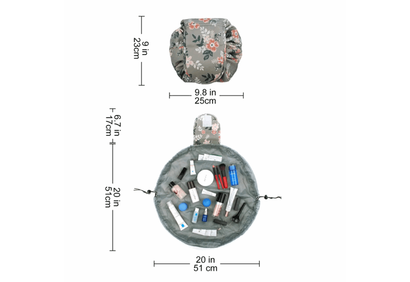 Helt sort enkel i fargen, men genial i bruken. Åpnes helt opp om ønskelig så ser du enkelt hva du har med deg og slipper bruke tid på å lete.Åpen ca 60cm i diameter (rund).