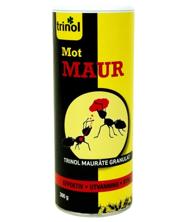 Trinol Mauråte Granulat til kontroll av maurinvasjoner. Bare én behandling pr. skadedyrangrep i den tiden som maurene er aktive; ikke oftere enn én gang pr. måned. For å sikre langvarig effekt må behandlede flater ikke rengjøres. Dersom man følger bruksanvisningen, er én anvendelse nok for å tilintetgjøre reiret fullstendig innen 3 uker.