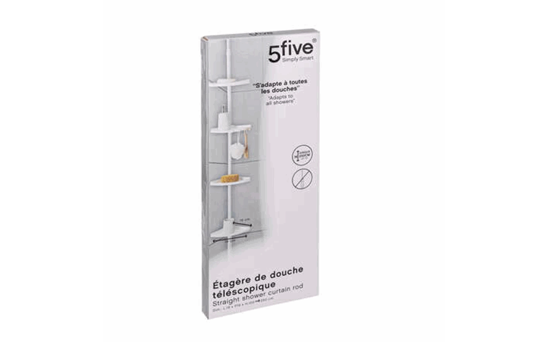 Justerbar mellom 180-240cm. Justerbare hyller. Fin i dusjen der man ikke ønsker å skade flisene.
