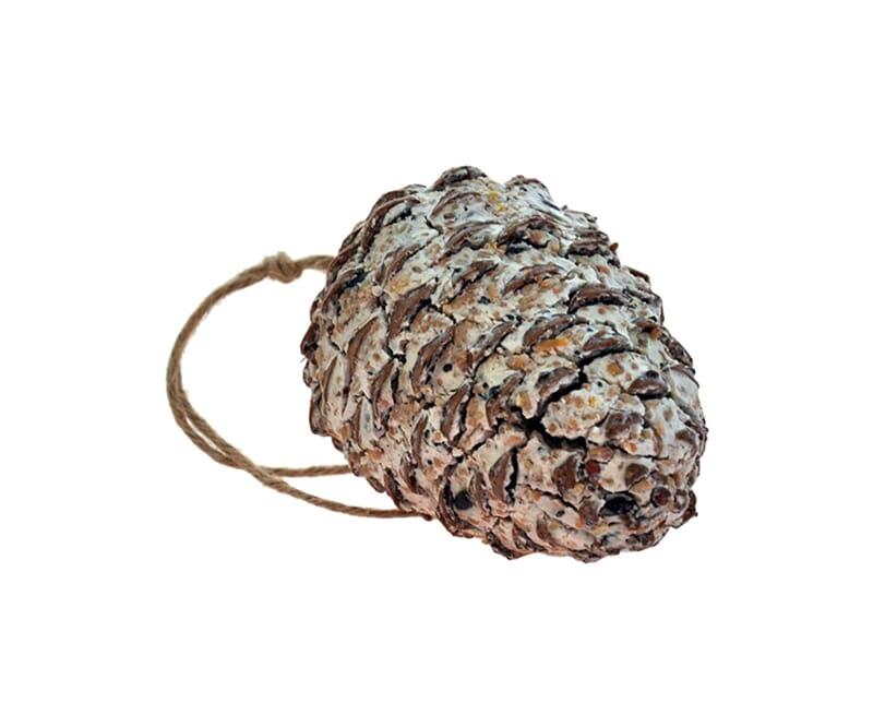 Kjempekongle m/frø og fett til fugl Et 100% naturprodukt. En pinje kongle fylt med oksetalg med oljeholdige frø og korn. Næringsrikt for fuglene, dekorativt i hagen.