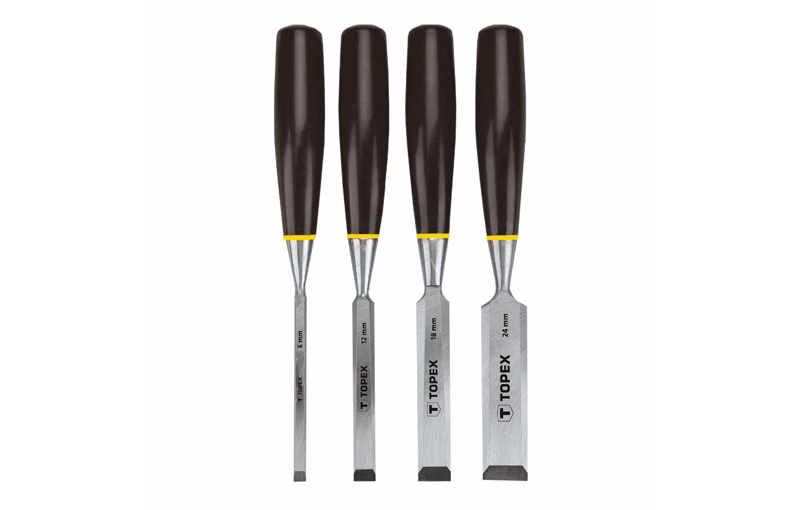 Sett med 4 huggjern 6-12-18-24mm. Med plasthåndtak. NOBB-informasjon