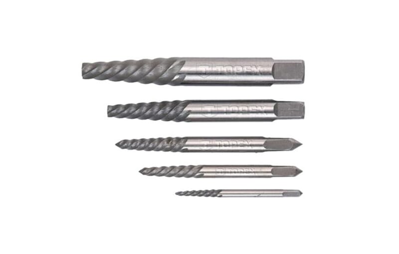 Skrueuttrekker, 5 stk i sett, dia. 3,3 til 19 mm, plastboks for oppbevaring