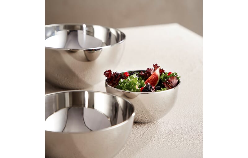 Bolle-sett i stål 3-pk. Ass Rustfritt bolle-sett med blank polert inn og utside. Dia.: 15 - 19 og 24cm