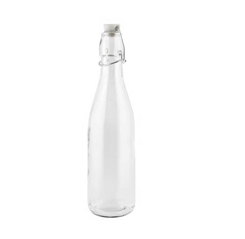 Flaske m/vippekork DAY 1 liter Saftflaske med vippekork som rommer 1,0 liter. Skal flasken steriliseres med kokende vann så skal den først forvarmes med varmt vann fra springen.