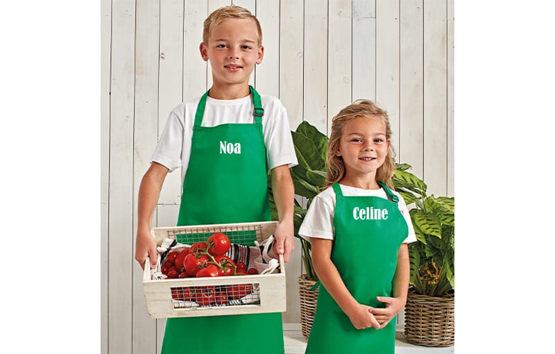 Forkle til barn med valgfritt navn trykket på. Noter i kommentarfeltet i utsjekk hvilket navn du ønsker. Tåler opptil 40grader i vaskemaskinen, ikke tørketrommel.195 g/m². 65% polyester / 35% bomull Størrelse: Mini: B: 43 cm / L: 53 cm ca 3-6år