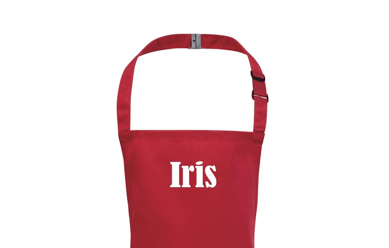 Forkle til barn med valgfritt navn trykket på. Noter i kommentarfeltet størrelsen du ønsker. Tåler opptil 40grader i vaskemaskinen, ikke tørketrommel. 195 g/m². 65% polyester / 35% bomull Størrelse: Junior: B: 48 cm / L: 63 cm 7/10år