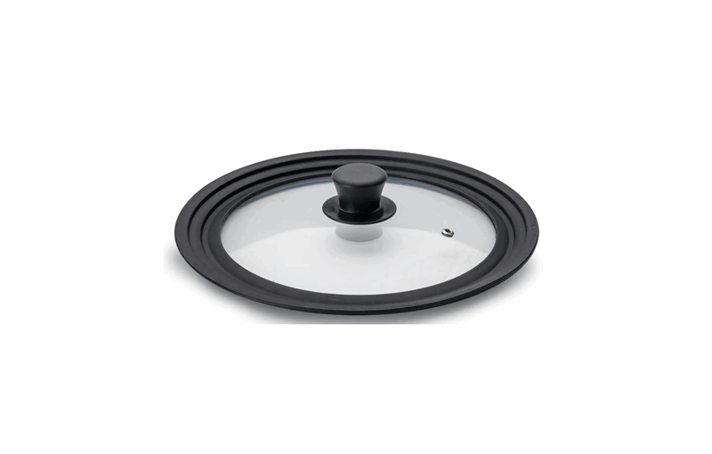 Lokk i glass med silikon kant for tettheten sin del. Dette lokket passer til panner med diameter 16, 18 og 20cm.