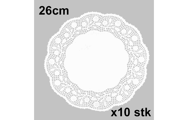 • Kakeunderlag 26cm 10stk hvit rund mønstret