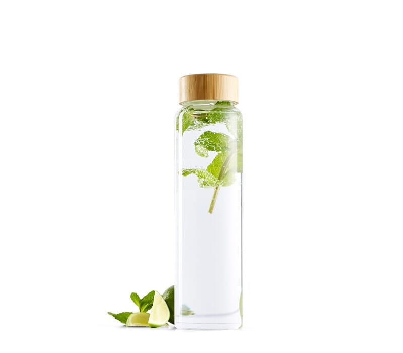 • Mugge i glass 1liter bambus kork karaffel
