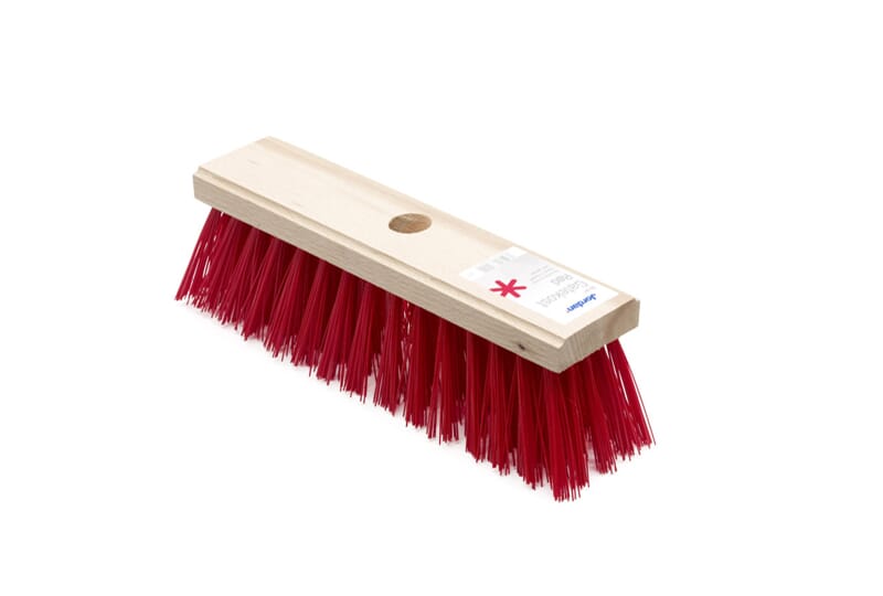 Gatekost av enkel kvalitet. Rød kunstbust og kostehode i tre. Passer til Jordans treskaft uten gjenger.