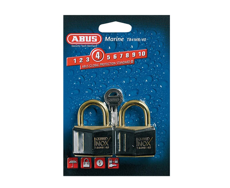 ABUS T84MB/40 2 PAKN. C/ES MARINE RUSTFRI Bredde Låskasse: 43 Tykkelse Låskasse: 17 Bøyle innv.bredde: 20,5 Bøyle innv.høyde: 21,5 Bøylediameter: 6,5