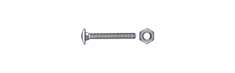 Låseskrue DIN 603 i syrefast stål med sopphode og firkantgrep. Leveres med mutter DIN 934. Blisterpakket.