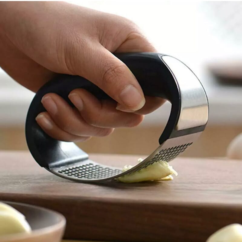 Enkel og genial hvitløksresser. Skrell først hvitløken, legg den på et skjørebrett og rull over den med hvitløkspressen. Den er også lett å rengjøre.