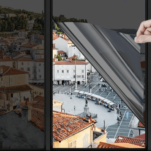 Folie/klistremerke for vindu. 45x100cm. Se ut men ikke inn. "Speil" look utvendig men man ser ut innenfra.