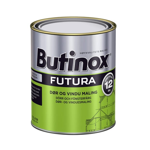 Butinox Futura Selvrensende Dør og Vindu er en vanntynnet spesialmaling til dør, vindu og detaljer av høvlet treverk. Den selvrensende malingen gir suveren finish og 12 års garanti på farge og glans. Dette gir langvarig nymalt og rent utseende, samt effektiv beskyttelse mot sopp og alger. Spesialmalingen gir en hurtigherdene og klebefri overflate for dører og vinduer som skal lukkes og åpnes.