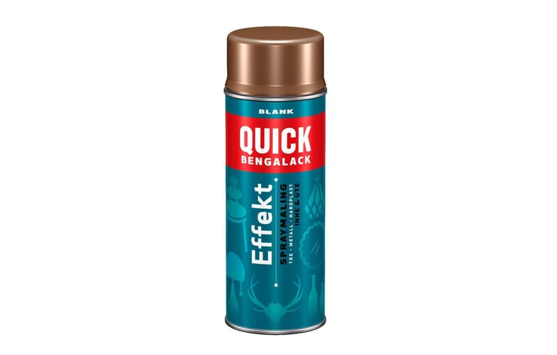 Quick Bengalack Effekt Sprayserien er en produktserie med spesielle effekter. Quick Bengalack sprayene er utviklet til å gi en sterk og slitesterk overflate til underlag av metall, tre og hardplast - inne som ute. Spray er ideell når "vanskelige" gjenstander med mange krinker og kroker skal fornyes og er påføringsverktøy og maling i ett - rist og spray! Sprayen gir en flott, hard, blank og slitesterke overflate som tørker på 1 time! Raskt og enkelt!