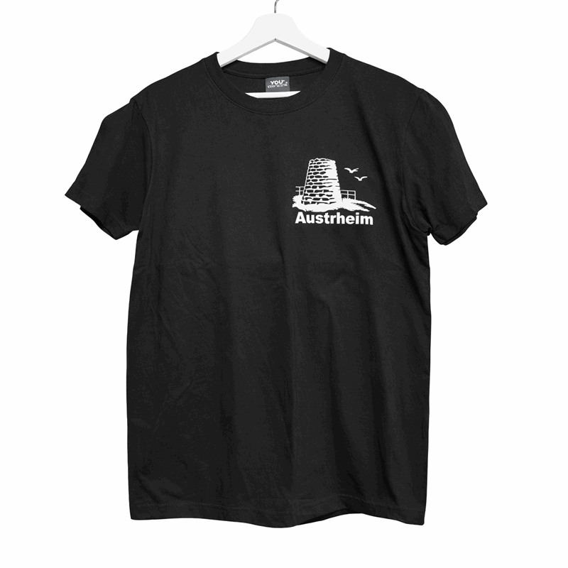 Me har fått trykket opp t-skjorter med Vardetangen på. Austrheim. Litt stor i størrelsen. Tåler vask på 40grader med ikke tørketrommel.