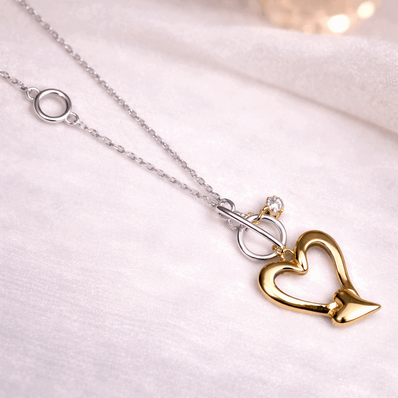 Langt smykke gullfarget hjerte